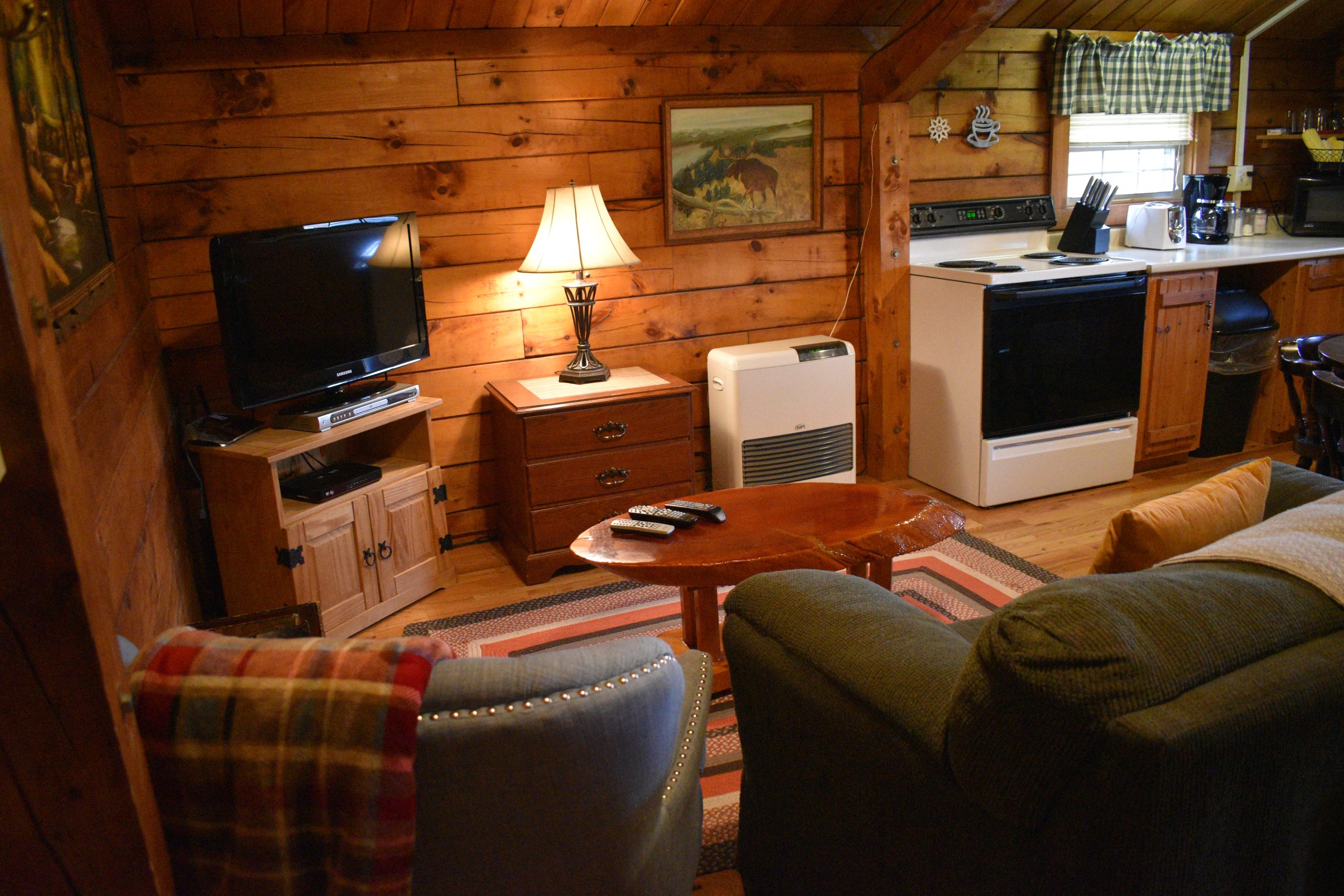 Friends can travel with you, without giving up your privacy! Our log cabins offer the cozy country warm of a log cabin and the conveniences of home!!