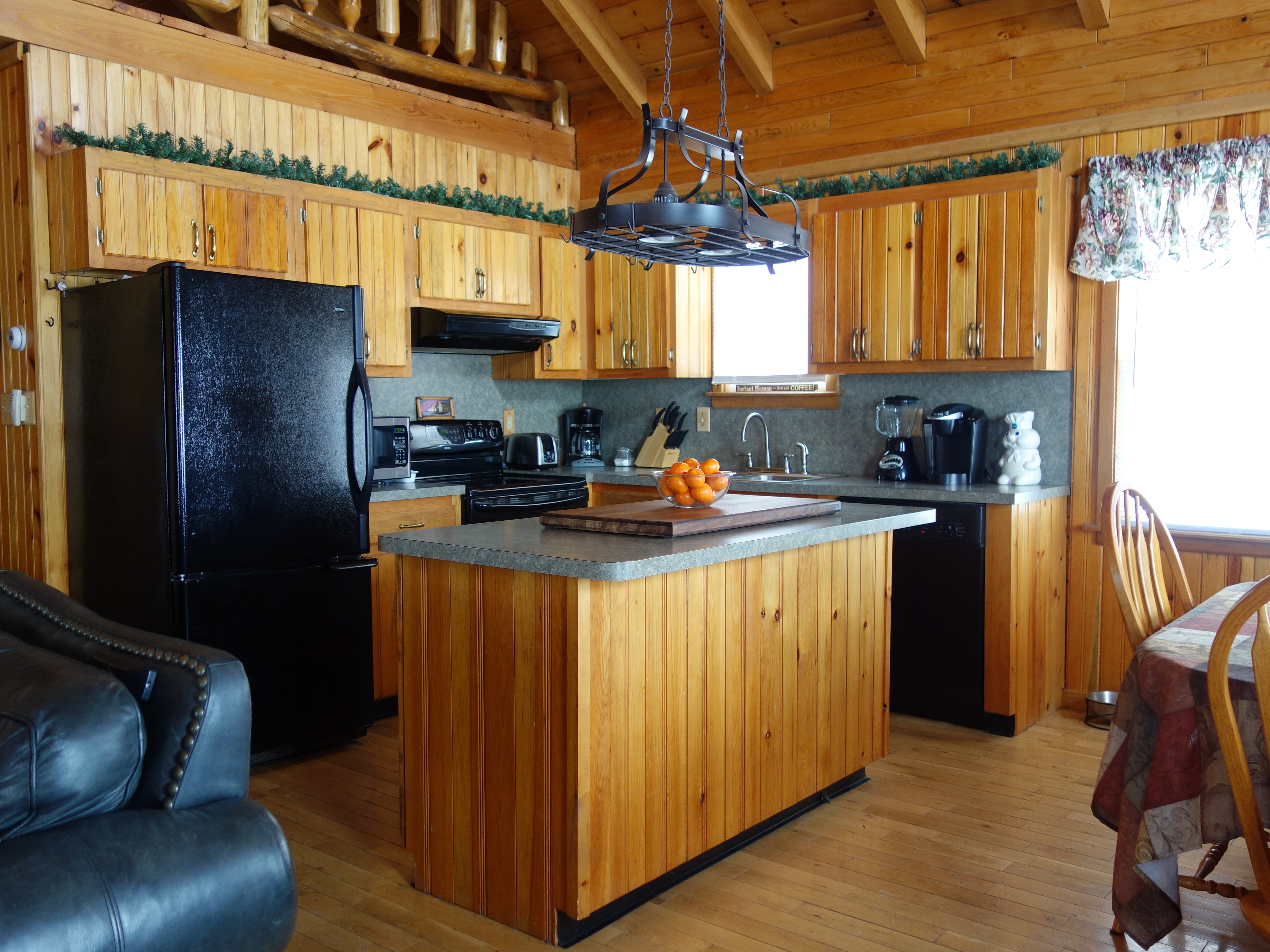 Cabin 2 is a 3 bedroom 1 bath log cabin, including a loft, full tub and shower, washer and dryer, fully equipped kitchen, WIFI, nice living room with large Flat screen TV , and Satellite service. Cabin 2 also features a covered porch with a view of the lake.